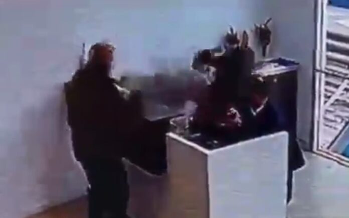 En las imágenes se visualizan restos de pólvora, en donde se ven afectadas las computadoras, los artículos de escritorio como lapiceras, archivos, teléfonos y demás utensilios diarios de uso personal.