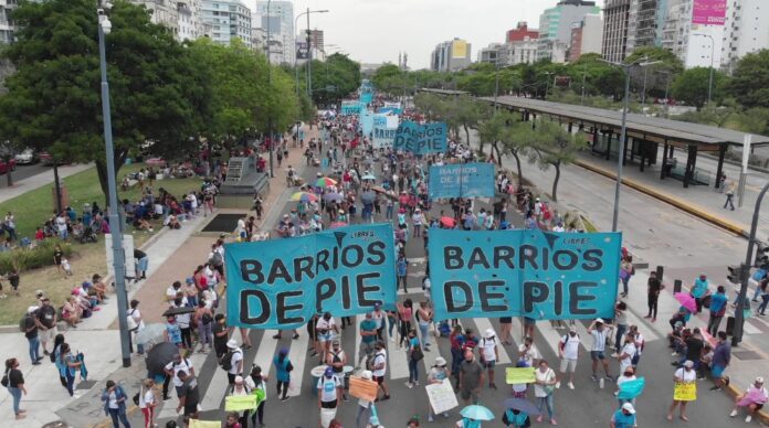 Barrios de Pie protesta desde mediodía en la Avenida 9 de Julio frente al Ministerio de Desarrollo Social en repudio a “recortes de nuevas incorporaciones al programa Potenciar Trabajo”.