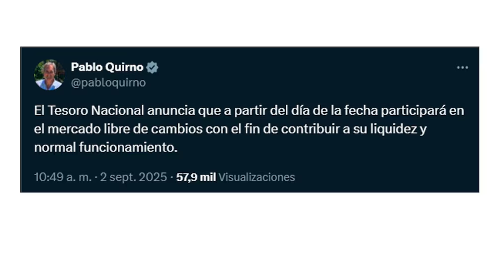 Así lo adelantó el secretario de Finanzas, Pablo Quirno, a través de las redes sociales.