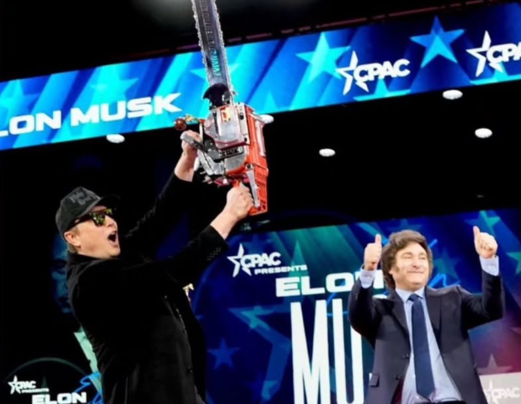 Milei acudió al encuentro de Musk al grito de “amigo” y, según las imágenes distribuidas por Presidencia, le obsequió una motosierra de utilería, con la que ambos se fotografiaron.