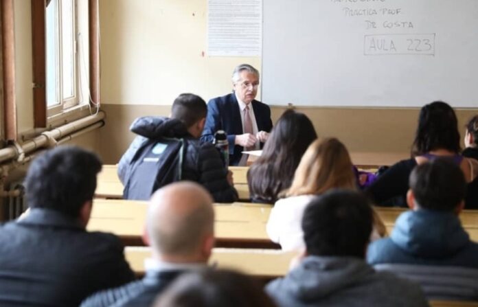 Estudiantes de la Facultad de Derecho de la UBA, donde el Presidente es profesor titular, se mostraron en contra de las declaraciones de Fernández. “Se anima a decir en un aula lo que declaró en México?…”, le preguntaron.