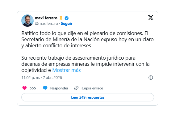 El diputado señala que no están ante un proyecto surgido de una deliberación abierta, plural y orientada al interés público. Sino frente a una propuesta cuya orientación y contenido reflejan, de manera evidente, los intereses del propio sujeto regulado. «Se trata de una reforma impulsada y diseñada por aquellos mismos actores que quedarán alcanzados por la norma».