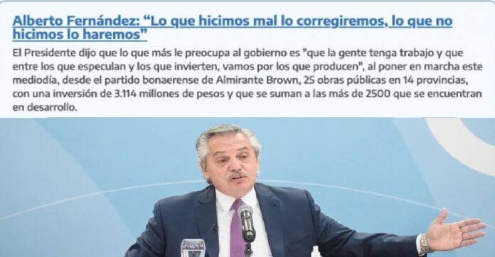 “El Presidente dijo que lo que más le preocupa al gobierno es que la gente tenga trabajo y que entre los que especulan y los que invierten, ‘vamos por los que producen”, se leyó en el sector de novedades de la app oficial haciendo referencia al discurso de Alberto Fernández en Almirante Brown.
